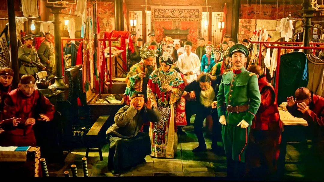 不过,侯班主也并非完全被动挨打,他每次被迫改戏时,都偷偷留一句原词。最后炮火轰塌戏台时,他敲响铜锣,让真名角儿顶着硝烟唱完原版《霸王别姬》,这也是他对强权的一种无声反抗和对艺术最后的坚守。